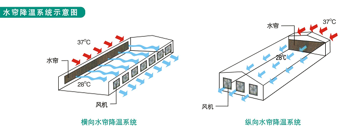 負壓風機主要是利用空氣對流,負壓換氣的降溫原理,由安裝地點的對向——-大門或窗戶自然吸入新鮮空氣,將室內悶熱氣體迅速強制排出室外。而水簾風機降溫系統是由紙質多孔濕簾、水循環系統、風扇組成。